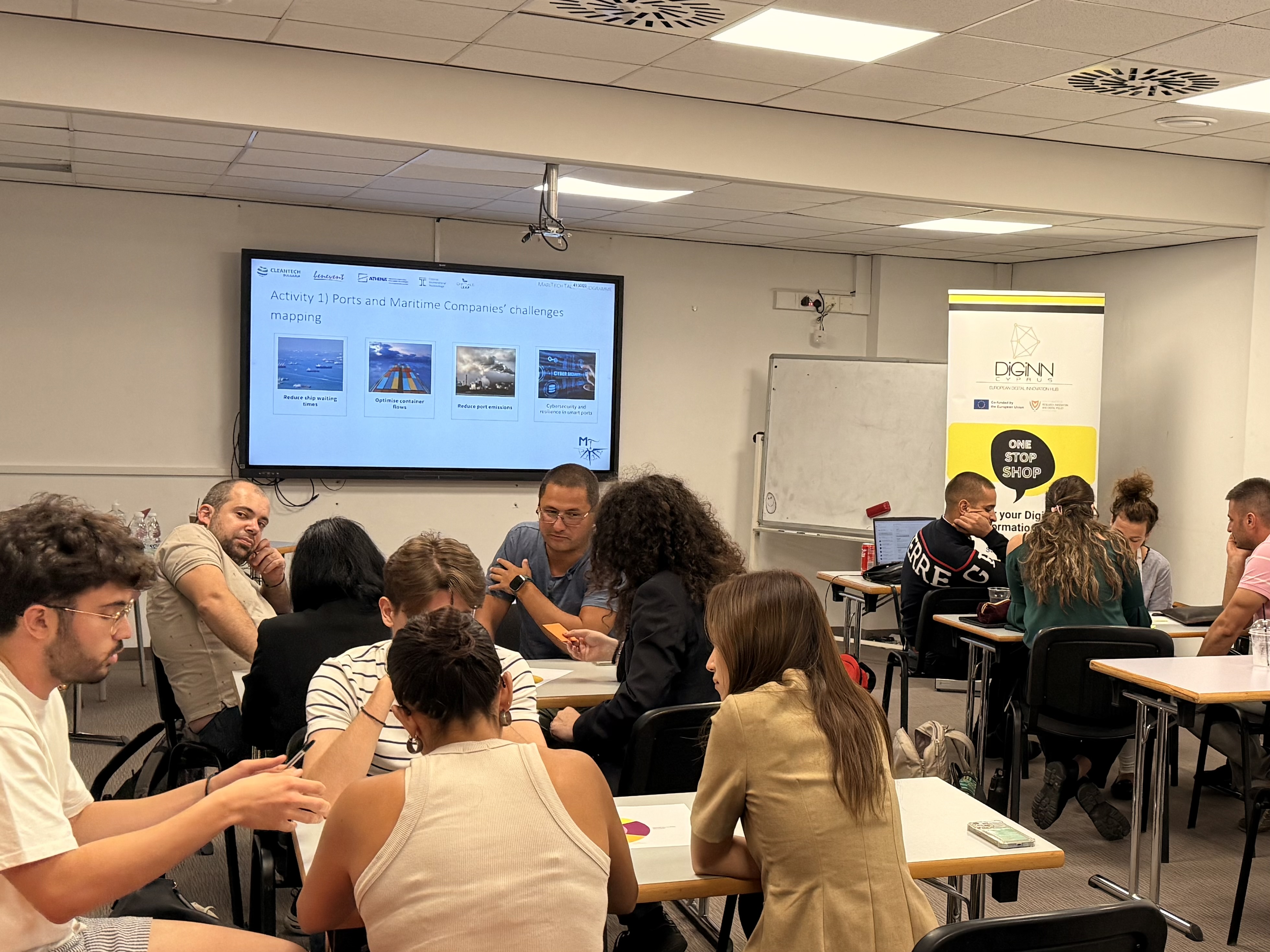 The onsite phase took place from 6 to 8 October 2025 and featured a mix of conference attendance, workshops, and a guided port visit. Participants engaged in morning sessions at the Maritime Cyprus 2025 Conference, gaining exposure to global perspectives on shipping, regulatory developments, and industry trends. Afternoon sessions included workshops on IMSAS auditing, port infrastructure management, systems thinking, enterprise design, and the integration of AI in problem-solving processes, held at the Cyprus University of Technology. A dedicated workshop on digital transformation, delivered with the support of DiGiNN, enabled participants to analyse organisational challenges and identify digital capability gaps. All materials are made available on the Collaboration Node.